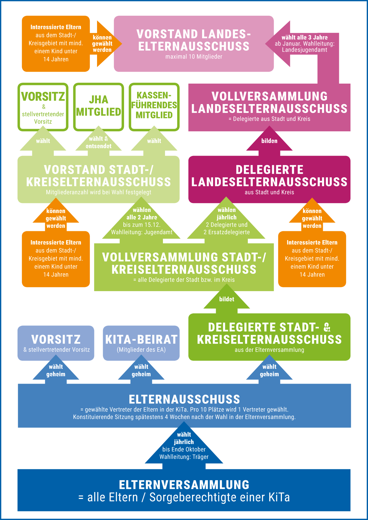 Vier Elternvertreter entsenden wir als Delegierte in den Landeselternausschuss, um Themen bei Bedarf auf Landesebene zu bringen, oder von dort aus bis in jede KiTa im Kreis zu verbreiten.